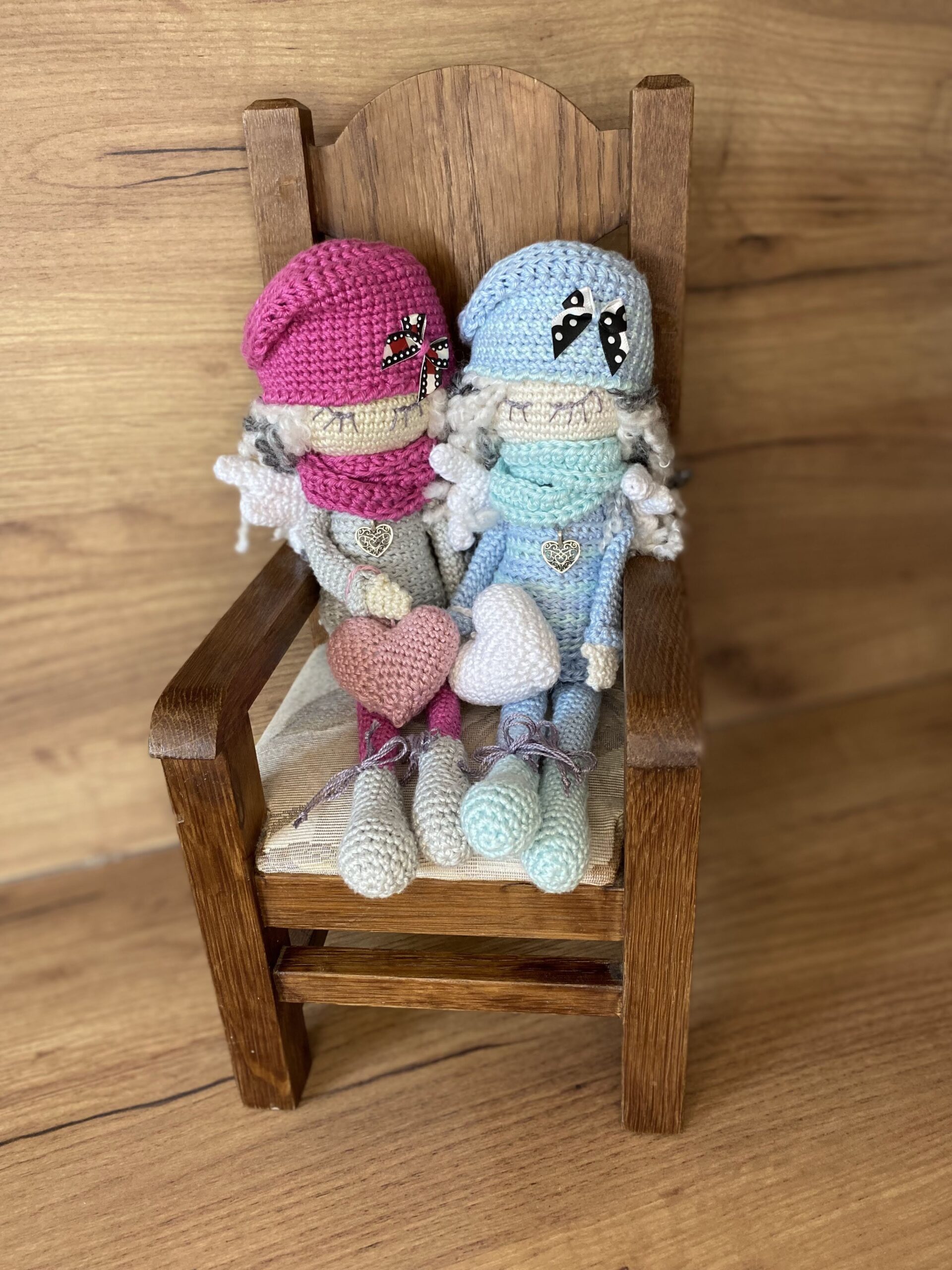 Háčkované z bavlněné příze Camilla. Velikost Andělky je 27 cm. Možnost jakékoliv barvy na objednání.