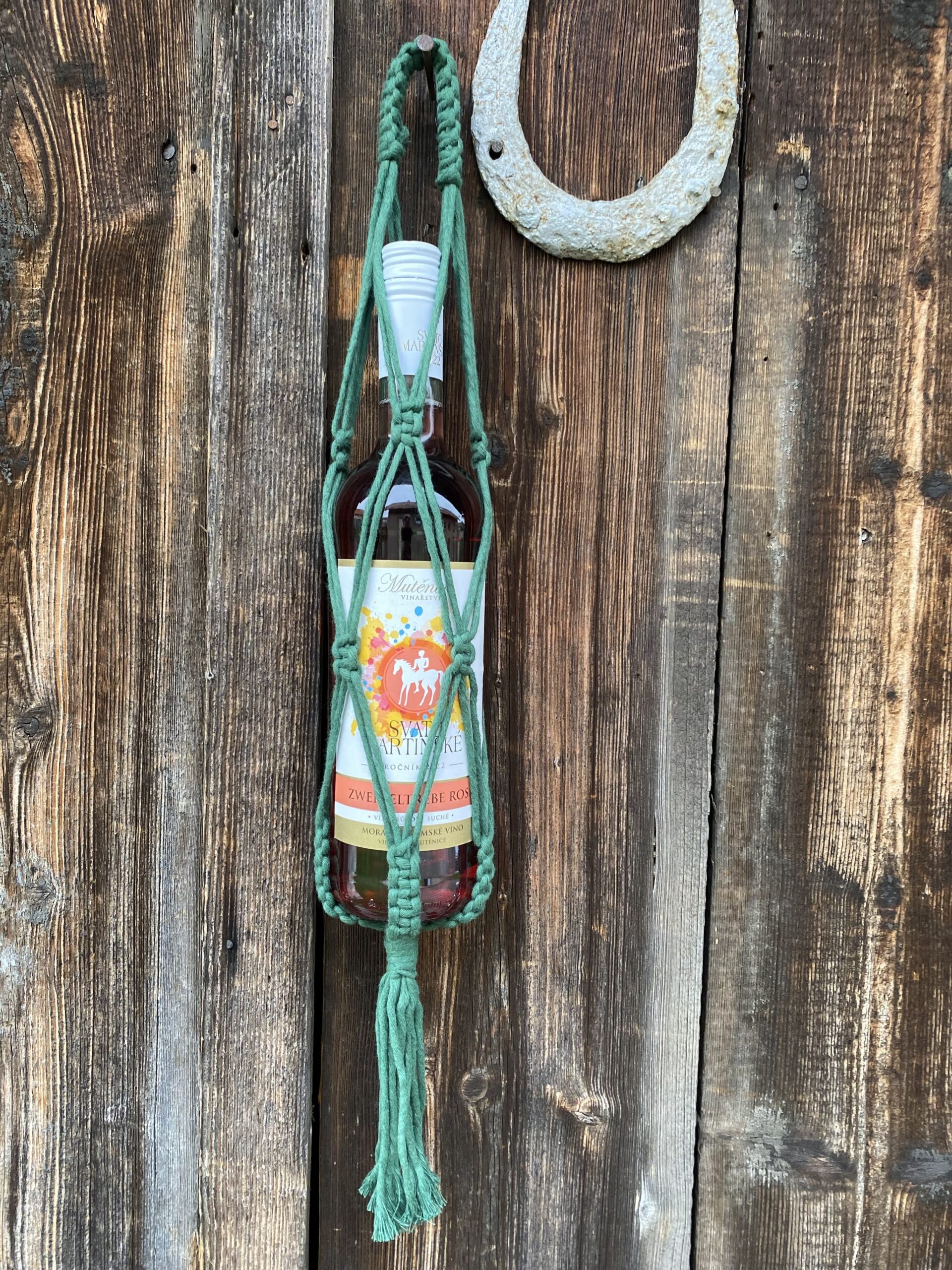 Jdete na návštěvu a nevíte jak vkusně darovat víno? Problém Vám vyřeší macrame taška na láhev. V různých barevných provedeních na objednávku.